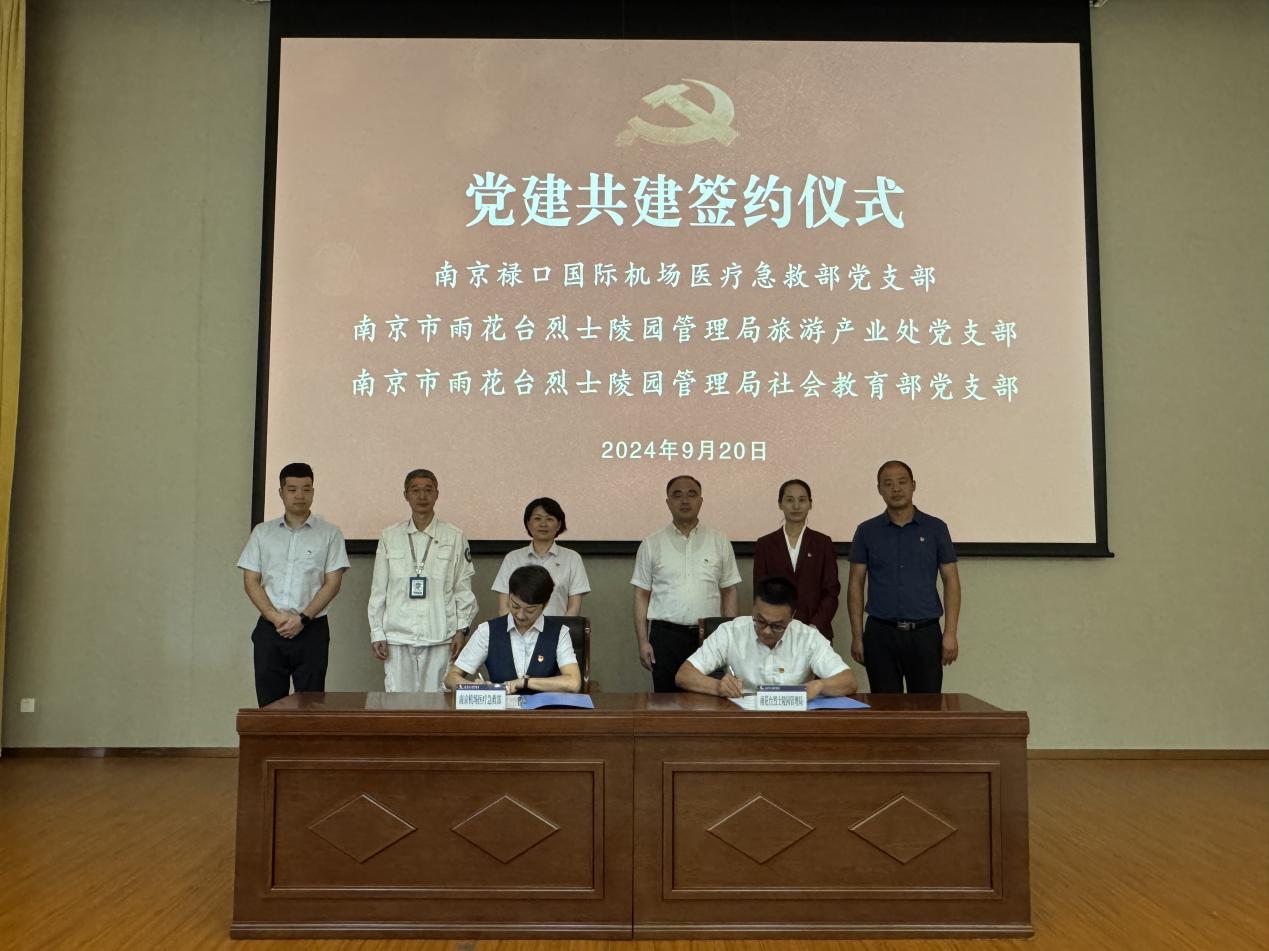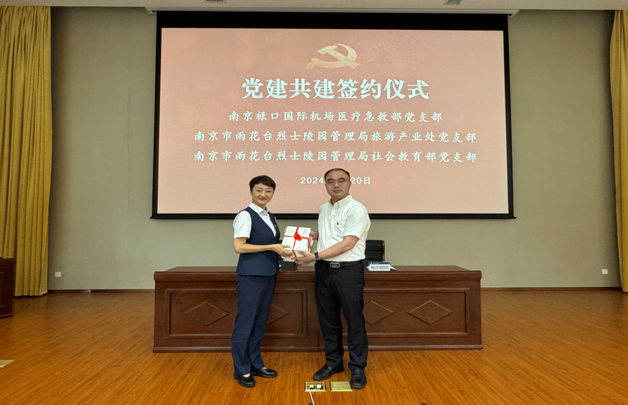 为推动党建工作与红色旅游、红色教育深度融合,充分发挥双方资源优势,雨花台烈士陵园管理局旅游产业处党支部、社会教育部党支部与南京禄口国际机场医疗急救部党支部签订共建协议,并向对方赠送雨花英烈书籍。双方进一步构建“资源共享、党建共建、优势互补、协调发展”的党建工作新格局,在党性教育和革命精神传承上走深走实。签约活动后,与会党员实地参观南京禄口国际机场TOC运行调度室、机坪塔台和机场文旅服务中心。