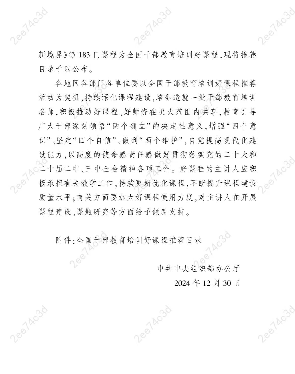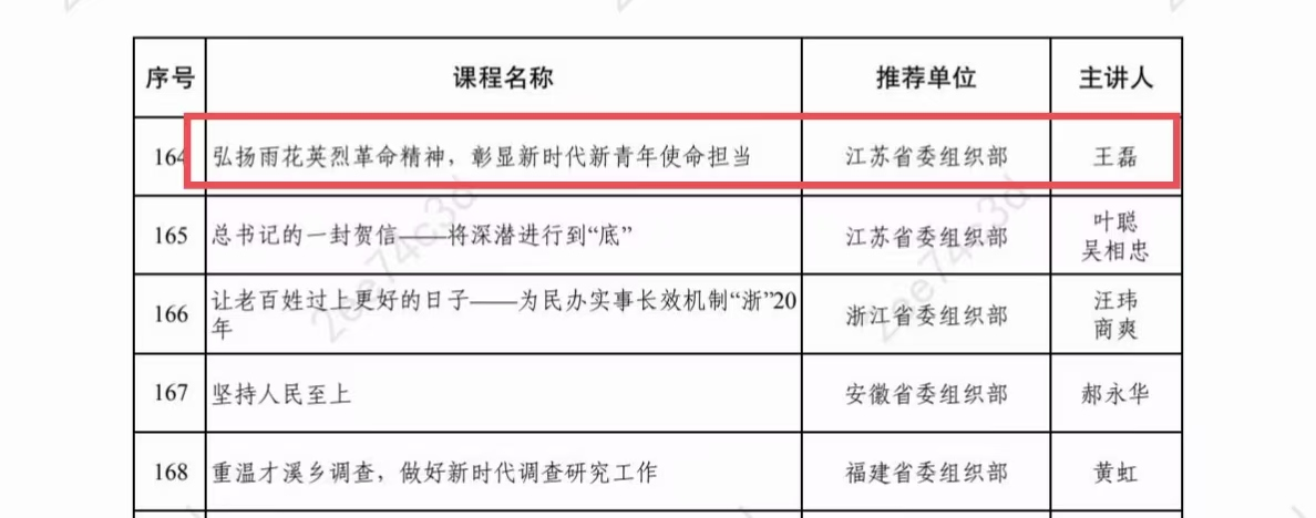 为持续深化习近平新时代中国特色社会主义思想学习教育,进一步加强干部教育培训课程建设,加快推进优质培训资源共建共享,根据《干部教育培训工作条例》和《全国干部教育培训规划(2023—2027年)》,中央组织部组织开展了全国干部教育培训好课程推荐活动。经专家评审,确定183门课程为全国干部教育培训好课程。其中,雨花台烈士纪念馆与南京师范大学联合制作的《弘扬雨花英烈革命精神 彰显新时代新青年使命担当》入选全国干部教育培训好课程。