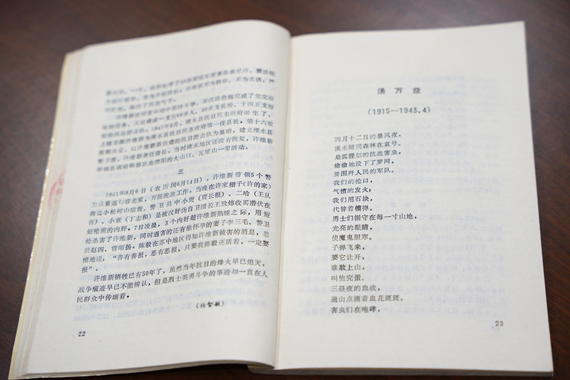 他是个什么样的人?又是如何牺牲的?1991年中共溧水县委党史资料征集委员会、溧水县档案馆编的《溧水革命人物》中,收录了汤万益等革命烈士传记。溧水区文联原党组书记、主席卞新宏告诉现代快报记者,这本书中的传记,是老一辈党史、档案工作者通过查阅档案、口述征集形成原始资料,再利用这些资料进行编撰的。