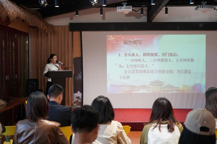联盟红色文化宣讲志愿服务队志愿者、雨花台烈士纪念馆讲解员冯丽桦作专业培训