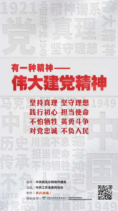 人无精神则不立,国无精神则不强。党的二十大站在党和国家事业发展全局的战略高度,把“弘扬伟大建党精神”写进大会主题,强调“弘扬以伟大建党精神为源头的中国共产党人精神谱系”。为凝聚推进中国式现代化的精神伟力,由中央网信办网络传播局指导,中共江苏省委网信办出品,现代快报+制作的“有一种精神”系列微视频,2023年12月起正式上线,通过学习第一批46种纳入中国共产党人精神谱系的伟大精神,引领广大青年踔厉奋发,勇毅前行,为推进中国式现代化汇聚磅礴力量。