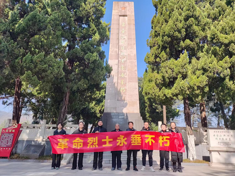 当天,来自南京高校的志愿者们,也来到云台山抗日烈士陵园进行祭扫活动。不仅前期帮助搜集资料和沟通联系,现场还陪同亲属寻访邱立生烈士和战友们的长眠之地,瞻仰肃穆的纪念碑,向抗日烈士纪念碑献花。南京晓庄学院音乐学院志愿者还为大家在线演唱《新四军军歌》。“倾听英雄的事迹,我们仿佛回到当时情景中”,东大成贤学院大学生红色文化志愿者李孝萱告诉记者,“革命烈士永垂不朽,我们不会忘记你们。致敬先烈的同时,传承红色基因、赓续红色血脉,今后以实际行动告慰英雄的忠魂。我们要以革命先烈为榜样,脚踏实地为国家复兴而努力拼搏。”