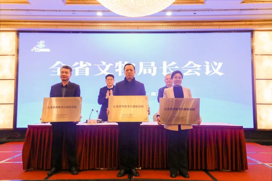 会议为首批江苏省考古遗址公园颁牌。苏州市文物局、盐城新四军纪念馆、南京博物院等3家单位负责同志作交流发言。