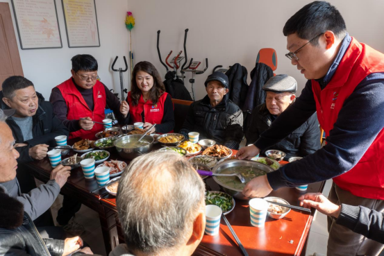 新春同庆谋发展,携手共进谱新篇。1月26日,在春节来临之际,苏州市相城区漕湖街道漕湖花园二社区党委携手社区日间照料中心,汇聚了社区退役军人志愿者和优抚对象,举办了一场温馨的年夜饭活动。在喜庆祥和的氛围中,众人热切地讨论着“红色帮帮团”在新一年的发展前景,同时积极为日间照料中心的提升改造献言献策,提出了许多富有建设性的宝贵意见。