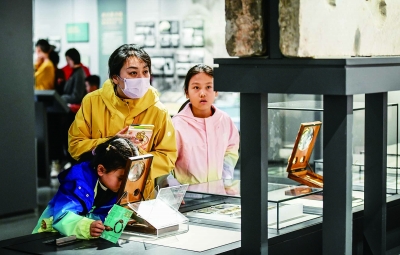 “妈妈,我已经找到6种龙了,等找全了就可以去盖章了!”大年初五,9岁的王明涵跟着妈妈来到朝天宫,兴奋不已。南京市博物馆推出“寻龙记”特别受小朋友欢迎,以龙生九子为设计蓝本,设计图章,并以古建、文物为主题,观众寻找馆内与“九龙”相关的文物、建筑构件,拍照打卡可得相应印章。