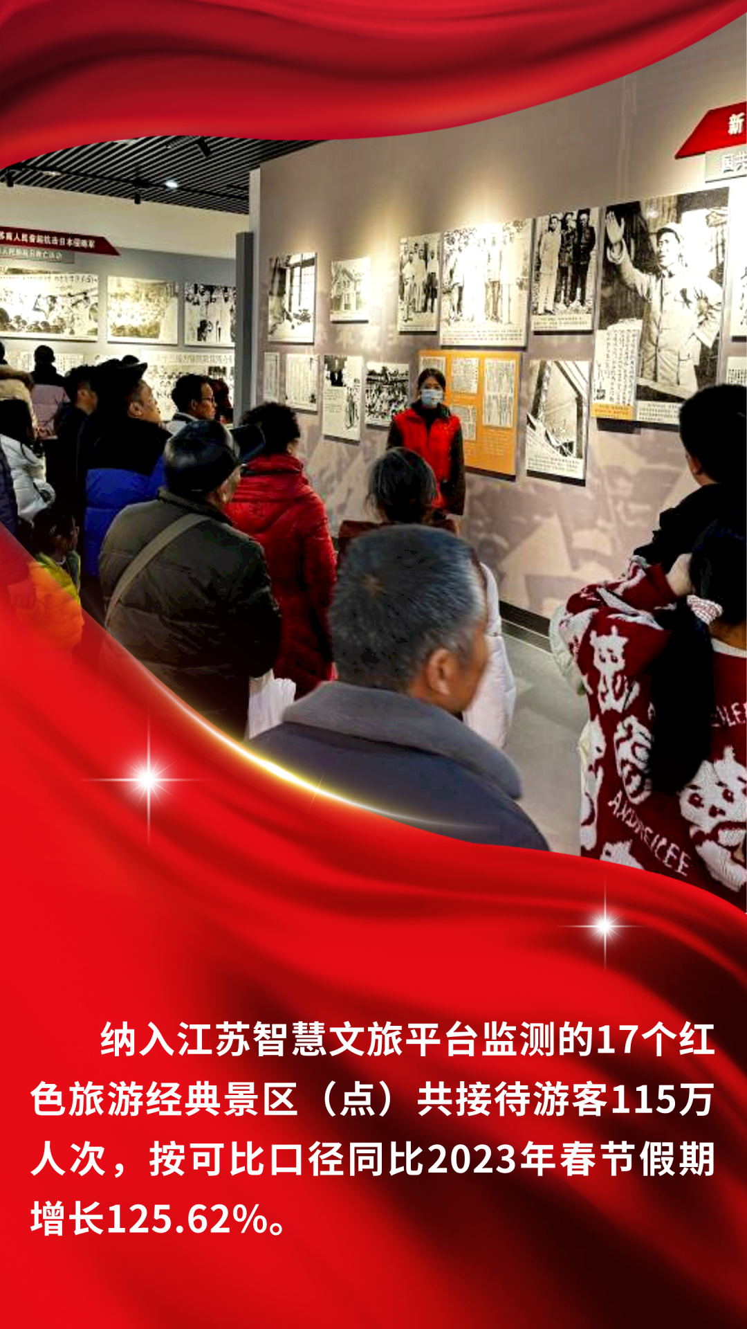 2024年春节期间,江苏省各大景区点人气高涨,特别是红色旅游持续升温。我省共有全国红色旅游经典景区11处23个景区(点),备案革命博物馆、纪念馆46家,全国红色旅游融合发展试点单位1家,江苏省红色旅游融合发展示范项目11个、培育项目11个。江苏各地将中华优秀传统文化、红色文化与旅游活动紧密融合,通过组织“纪念馆里过大年”、红色研学等内容丰富、形式多样的红色文化迎新春系列活动,吸引广大市民游客观展体验,将红色资源和革命历史作为生动教材,让人民群众在铭记光辉历史、缅怀革命先烈活动中汲取奋进力量、传承红色基因。