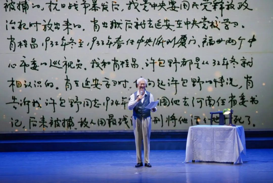 讲好英烈故事的关键在于对史料持之以恒的挖掘。今年清明前夕,雨花台烈士纪念馆数次前往广东汕头许包野故居,征集到一批新史料,以此为基础创作文学作品《半个世纪的等待》。在第三章节“红色箴言”中,央视原主持人、朗诵艺术家陈铎将这个故事搬上朗诵会舞台,通过艺术化手段再现雨花英烈许包野感人至深的革命精神,打动了在场的每一位观众。