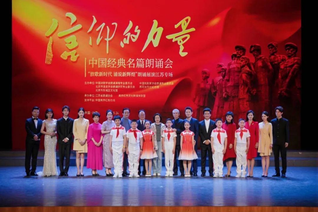 今年是新中国成立75周年,为进一步宣传弘扬雨花英烈事迹与精神,5月24日,雨花台烈士纪念馆联合江苏省朗诵协会共同策划举办“信仰的力量”中国经典名篇朗诵会。朗诵会突出红色文化主题,展现了革命浪漫主义和家国情怀,众多著名朗诵艺术家齐聚一堂,为观众呈现一场精彩绝伦的红色文化“盛宴”。