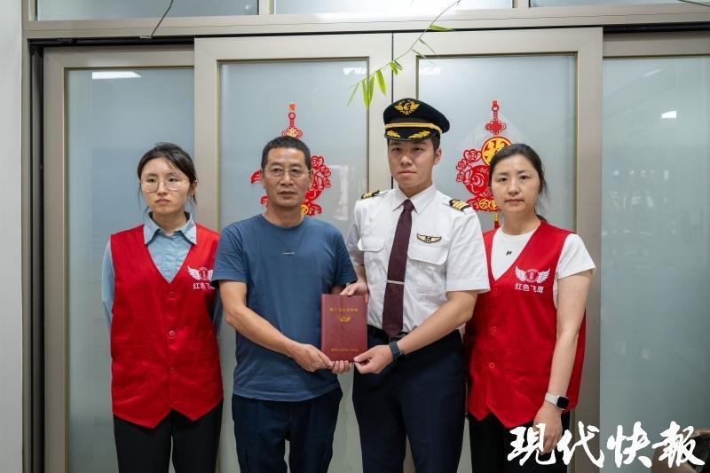 △南京抗日航空烈士纪念馆工作人员向陈辉颁发英烈亲属联络簿
