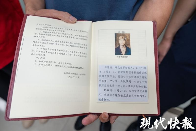 陈辉从未见过家里的这位英雄,对于大伯最初的印象,源自爷爷陈德楷的描述,“大伯去抗日了,一直是爷爷引以为傲的事情,但他一直都不相信自己的儿子牺牲了。”陈辉说,陈源清毕业于空军防空学校通信训练队第五期,历任空军防校通信训练队学兵第一中队第一分队队附、中央防空情报所无线电第一四五分台陆军少尉分台长。1944年11月27日,日机空袭贵州麻尾,陈源清与通信士庄痕正在收发情报,被炸牺牲,“当年,爷爷就得到了儿子牺牲的消息,也拿到了抚恤金,但是爷爷还是抱有一丝希望,他一直在等儿子回家,直到1976年爷爷临终前,还在叮嘱我爸爸,要继续找,生要见人,死要见尸。”