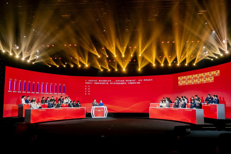 在全场观众热烈的掌声中,13支学习队伍闪亮登场,并喊出了“赓续红色血脉,汇聚奋进力量”的学习宣言。随着活动的正式开始,现场的氛围也更加紧张,每一轮都是一场知识的角逐,智慧的碰撞。