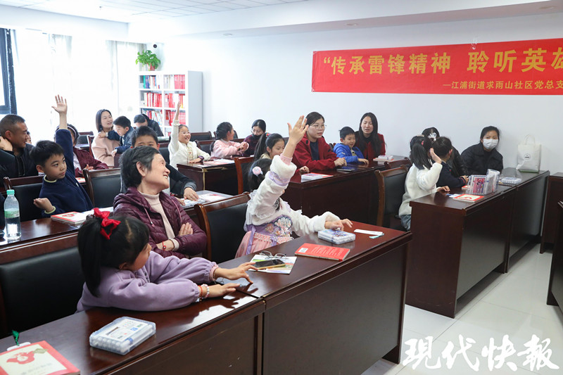 一起聆听雷锋叔叔的感人故事、深情朗诵《雷锋的故事》、小朋友和家长一起制作特色书签……为弘扬雷锋精神、传承红色基因,3月1日,现代快报欢乐社区行携手中国南京红色在线走进南京市浦口区江浦街道求雨山社区,与辖区小朋友一起学习雷锋精神,致敬榜样的力量。活动邀请了南京军休讲师团成员姚国应教授带来专题讲座,现场小朋友们收获满满,纷纷表示要向雷锋叔叔学习,争做乐于助人的好少年。