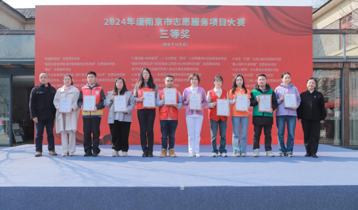 为培育志愿服务项目品牌,发挥典型示范带动作用,市委社会工作部于去年11月启动了2024年度南京市志愿服务项目大赛。活动现场为获得一二三等奖的项目代表进行了颁奖。其中,一等奖项目小红梅“善”“治”融合志愿服务项目志愿者,从志愿服务融入“大慈善”助力社区治理的角度,分享了他们的宝贵经验,让在场的每一个人都深受触动。
