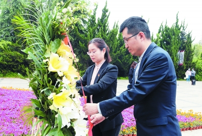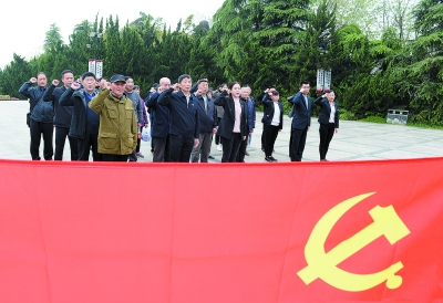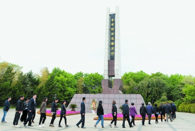 党员们瞻仰革命烈士纪念碑。