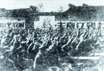 战斗前,在江浦县山北举行誓师大会情景。 浦口区档案馆供图