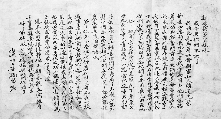 史砚芬《狱中写给弟弟妹妹的信》