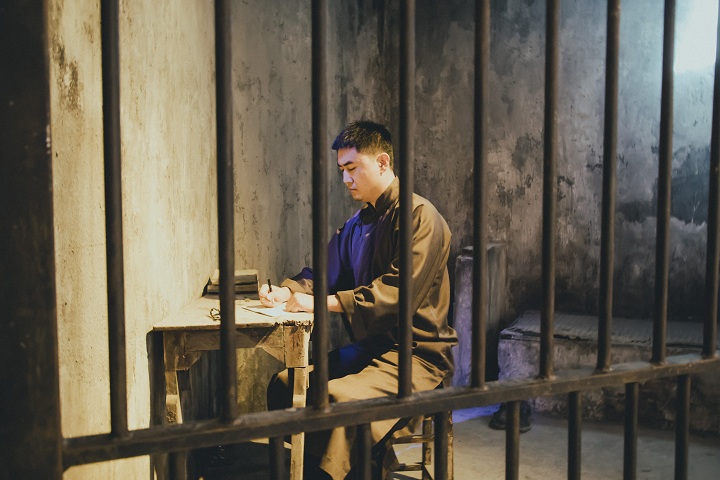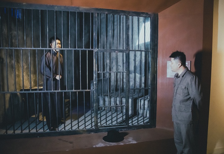 幽暗的囚室中,一束光透过铁窗照到邓中夏的书桌上,邓中夏扮演者与叛徒激烈交锋。