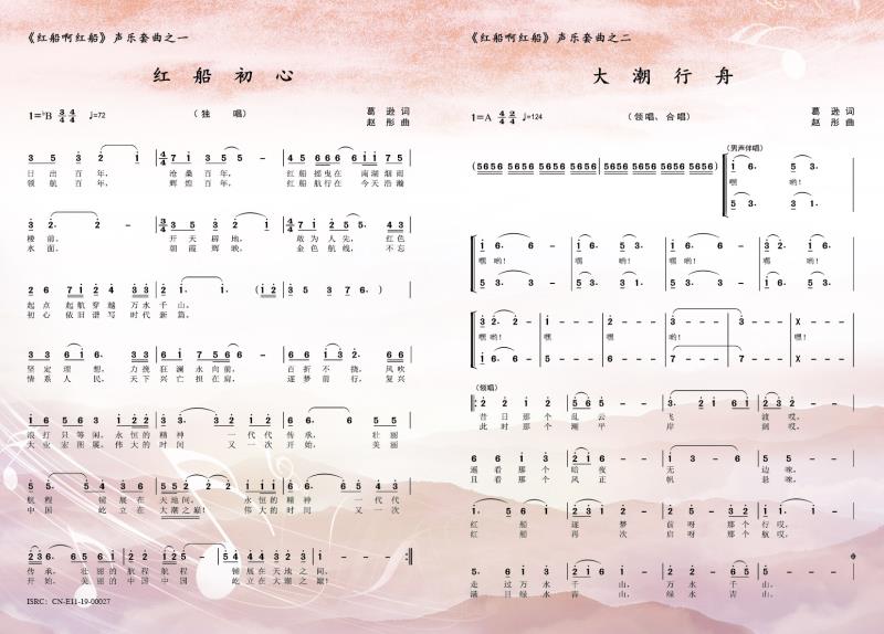 声乐套曲,在我国常被用来表现重大题材,如《黄河大合唱》《长征组歌》《西柏坡组歌》等。南湖红船,是中国共产党的诞生之地,应该有部专属于它的声乐套曲。