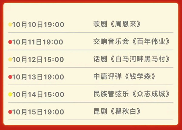 为迎接党的二十大胜利召开,江苏省演艺集团10月10日起将举办“喜迎二十大·永远跟党走”优秀文艺作品线上展播活动。歌剧《周恩来》、交响音乐会《百年伟业》、话剧《白马河畔黑马村》等我省6部舞台精品剧将从10月10日至10月15日正式上线与观众见面。