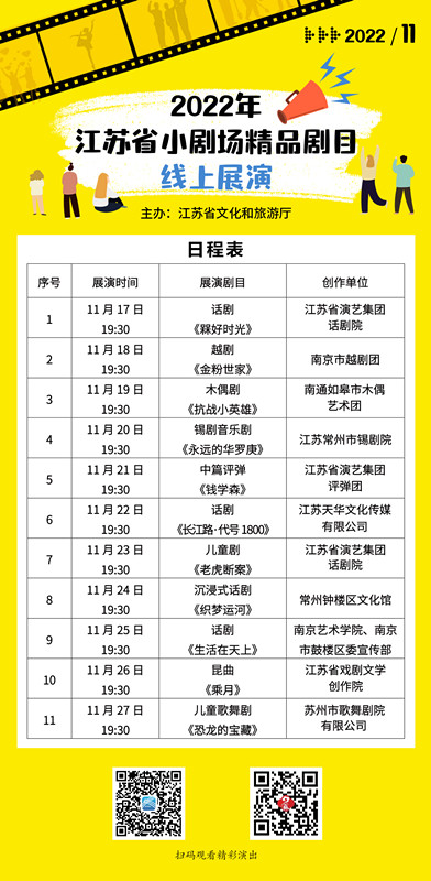 据悉,本次线上展演以剧场演出录制、线上展播形式开展,将在交汇点、江苏公共文化云平台播出,所有剧目均为免费观演。