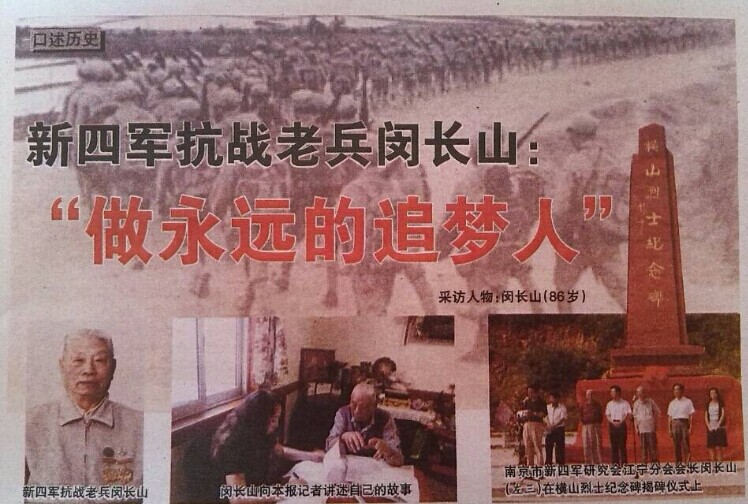 10月8日,记者来到江宁,采访了新四军抗战老兵闵长山。走进房间,正好赶上江宁区人大工作人员看望闵老,送走客人,闵老返回来招呼我们。他腰板挺拔、精神矍铄、和蔼可亲,2个多小时的采访,一个个刻苦铭心的故事,让我们了解了闵长山从过去的抗战娃到今天的老革命的成长历程……