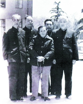 1984年,原中共南京地下市委负责人合影(左起:王明远、陈慎言、陈修良、朱启銮、刘峰)。