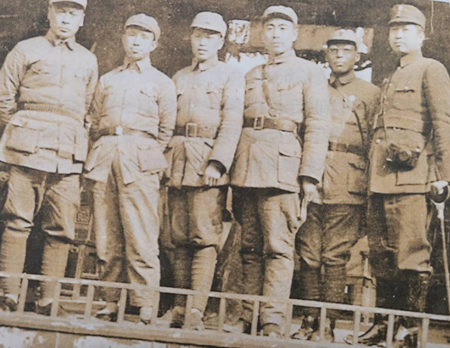 1939年,周恩来与新四军领导人在云岭(左起:陈毅、粟裕、傅秋涛、周恩来、朱克靖、叶挺)