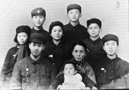 这是一张拍摄于1949年岁末的“全家福”,王家兄妹七人簇拥着母亲,母亲怀里抱着外孙。