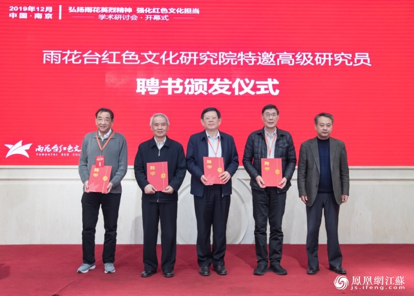 为了进一步提升智库的学术研究能力,雨花台红色文化研究院聘请了13位在国内有重要影响力的专家学者作为智库高级研究员,陈勇在开幕式上为高级研究员代表颁发了聘书。