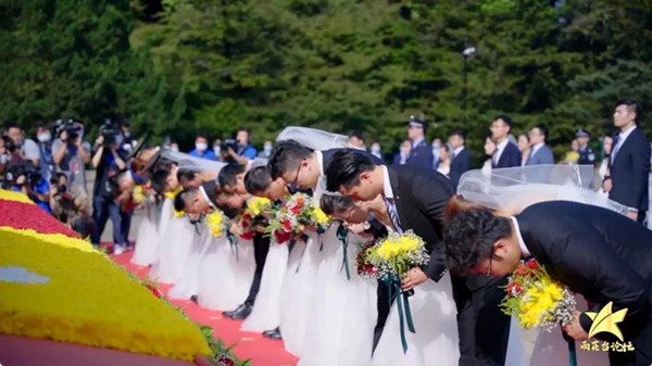 一对对新人怀着崇敬的心情,