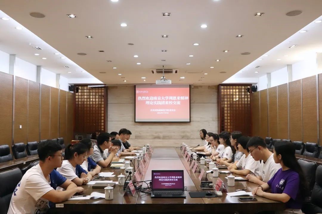 图为实践团队与淮阴师范学院“周恩来班”师生开展座谈会的现场