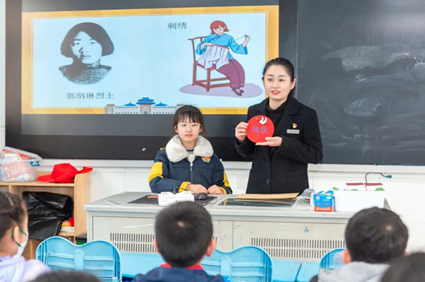 在北京东路小学周三的特色课堂上,来自雨花台烈士纪念馆的教育专员耐心引导,台下的孩子们听得聚精会神。他们透过手中的刺绣材料包,仿佛与曾经坚贞不屈的郭纲琳烈士有了更加深刻的共鸣。