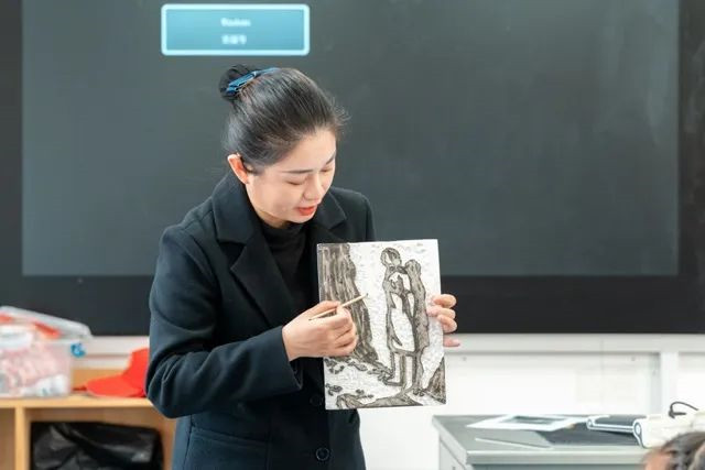 徐弘毅和陈诺是一对默契的好朋友,在艺术课堂上常常合作完成指导教师布置的任务,他们展示手中的版画向同学介绍:“丁香和阿乐的故事非常感人,她很年轻就为革命牺牲了,我们今天绘制了一幅丁香烈士斗争形象的版画来铭记她。”