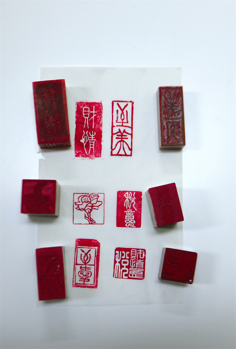 母亲节前夕,同学们细心设计、用心雕刻,篆刻出“至善”“至美”等方印,制作“平安喜乐”等印章,此外,同学们还篆刻出“康乃馨”图案,表达对母亲的祝福与祝愿。