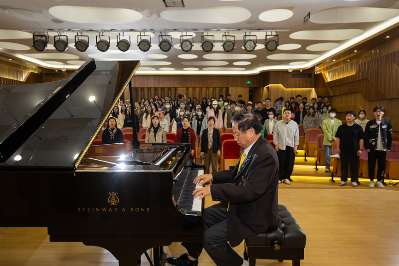 整场演奏持续了近三个小时,现场掌声雷动、高潮迭起。全场师生三次起立,跟随刘念劬一同唱响《义勇军进行曲》《我和我的祖国》《同一首歌》,在浸润式教育中传承红色基因,感受艺术魅力,汇聚精神力量,激发前行动力。