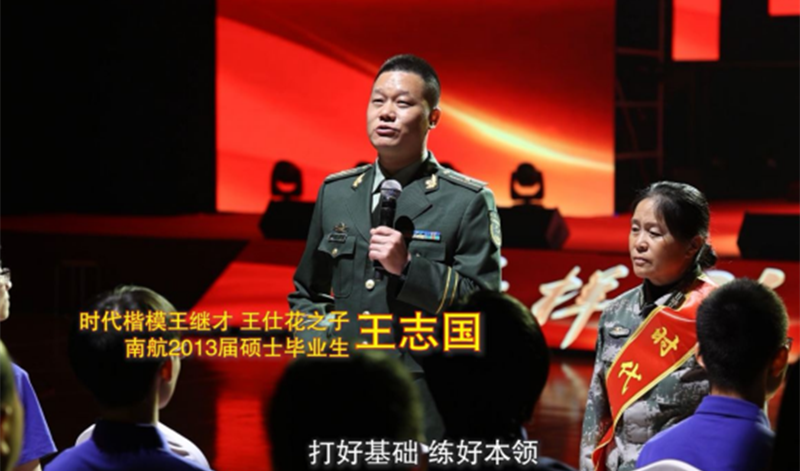 南航活动现场,全国时代楷模、守岛英雄王仕花和她的儿子王志国一现身,师生们以经久不息的掌声表达最高敬意。王志国是南航2013届校友。他在父母的影响下,毕业后光荣参了军,现在是一名海警执法员,继续着父辈的责任与担当。巡演现场,王志国为学弟学妹们送上寄语:祝愿学弟学妹们,能够胸怀梦想,脚踏实地,打好基础,练好本领,投入到祖国的强国建设中去。
