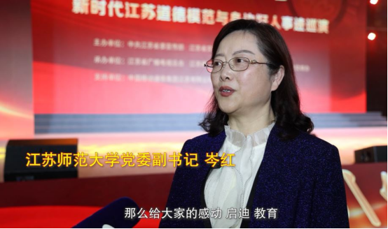 江苏师范大学党委副书记岑红:当道德模范和身边好人走进校园,和我们的师生面对面的时候,给大家的感动、启迪、教育都是非常深刻、生动、有效的。类似这样的巡演,或者是类似这样的道德模范精神的教育,我们后续还会以各种形式来进行。