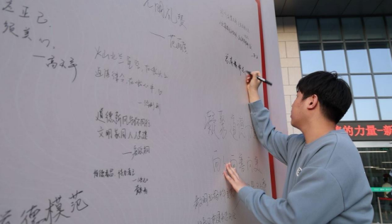5月6日——5月22日,“道德的力量”—新时代江苏道德模范与身边好人事迹巡演分别走进了“文明校园”南京航空航天大学、中国矿业大学、江苏师范大学、盐城工学院、南京医科大学、淮阴师范学院。近万名师生、各类青年代表共同参与了这场别开生面的思政课。每一场演出场馆外的“榜样引领前行 强国建设有我”的展板上,学子们都会留下自己的感悟,收获满满。