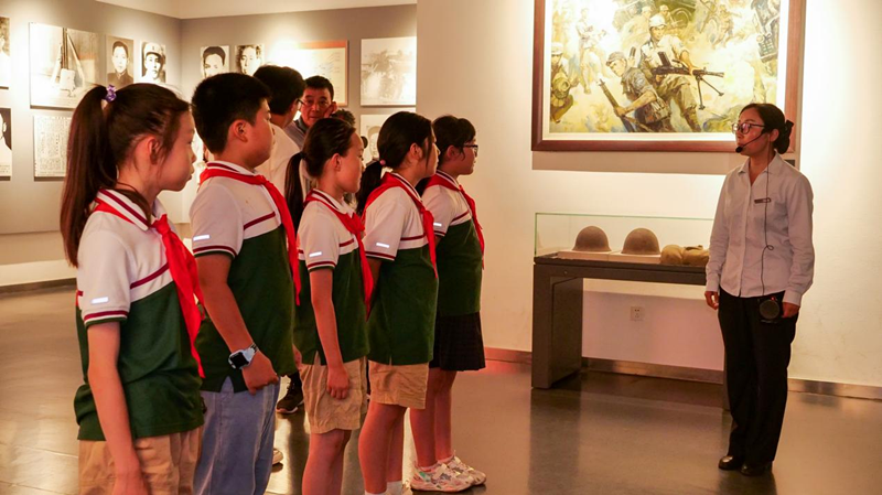 纪念馆展厅内,一张张历史照片、一件件革命文物、一段段视频诉说着那段烽火连天的岁月。少先队员们认真听,细心看,缅怀先烈、致敬英雄,表达对革命烈士的深切缅怀和崇敬之意。