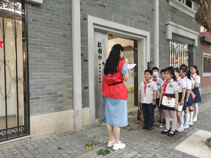沿着“小红梅”继续往前走,便到了7月24日正式开放的“小小红梅·红领巾信仰学习空间”。灰砖黑瓦三层小楼外,安放在建筑高处与外墙融为一体的“红领巾”格外鲜艳。