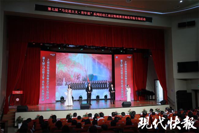 10月18日下午,第七届 " 马克思主义 · 青年说 " 走进南京特殊教育师范学院,举办专场活动。本次活动由中共江苏省委宣传部、中共江苏省委省级机关工委、中共江苏省委教育工委、共青团江苏省委等单位共同主办。现场,400 余名教师、辅导员和青年学生观看专场活动,感悟马克思主义的真理力量。