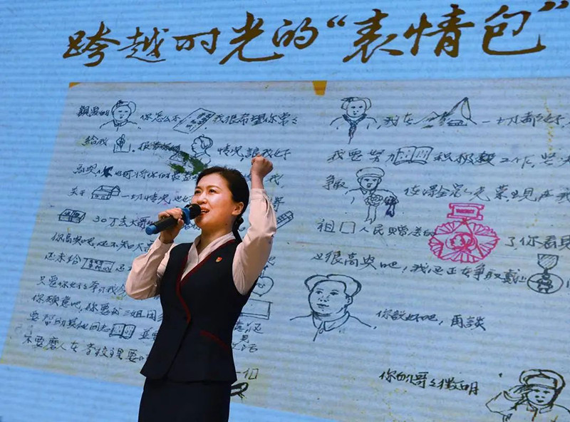 每一场红色宣讲,都是一次心灵洗礼。活动现场,一声声铿锵的话语、一封封打动人心的家书,感染了在场的每一个人。烈士李征明写给妹妹的家书中,图文并茂生动的“表情包”饱含对妹妹的疼爱,对亲人的思念……江苏省档案馆兰台红青年宣讲团成员李婧动情地为大家讲道:“李征明从参加抗美援朝战争到牺牲,他从未间断给家人写信。但提及自己情况时,说的最多的就是一切都好。他将所有的温柔寄给了家人,却把战争的残酷留给了自己。1953年6月23日,李征明主动申请上前线,在战斗中不幸牺牲,生命永远定格在了23岁。”