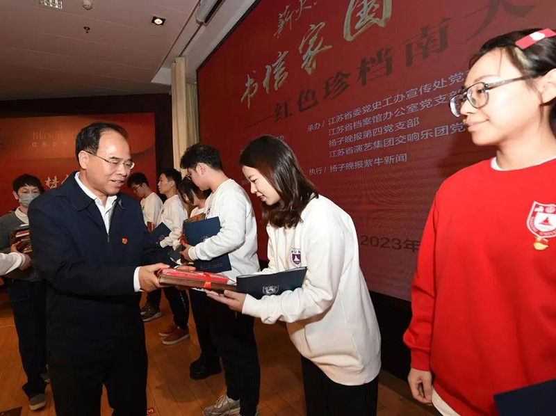 薪火照新途,筑梦向未来。为深入贯彻落实习近平总书记视察江苏重要讲话精神,用好用活丰富的党史资源,牢记嘱托、感恩奋进、走在前列,更好地激励青年学子在新征程上积极作为、担当笃行,12月8日,由江苏省委党史工办、江苏省档案局(馆)、新华报业传媒集团、江苏省演艺集团主办,“第一支部”党建联盟策划发起的“《书信家国 尺牍情深》红色珍档进校园”系列活动在南京大学正式启动。