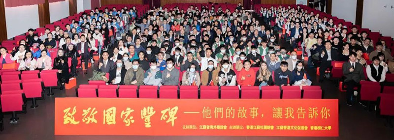 “吾愿吾亲爱之青年,生于青春死于青春,生于少年死于少年也……”12月19日,在香港青年学生的深情朗诵中,由江苏省海外联谊会指导支持,香港江苏社团总会、江苏香港文化促进会和香港树仁大学共同主办,香港江苏青年总会、苏港青年交流促进会协办的“致敬国家丰碑——他们的故事,让我告诉你”国情教育活动在香港树仁大学拉开序幕。来自香港树仁大学、香港理工大学等8所高校和苏浙公学、张振兴伉俪书院等5所学校的师生及香港有关机构代表近300人现场聆听。香港《大公报》、人民网、香港商报等媒体对活动进行了报道。