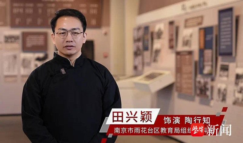 南京市雨花台区教育局组织科科长田兴颖饰演陶行知先生,他也是一名从南京晓庄学院毕业的学子。他说:“通过沉浸式宣讲,充分展现陶行知先生伟大的人民教育家、杰出的民主主义战士和优秀的大众诗人光辉形象,让我们身临其境感受到了以陶行知先生为代表的先贤先烈们的爱国主义精神和教育报国情怀,并从中不断汲取前进的精神力量。”
