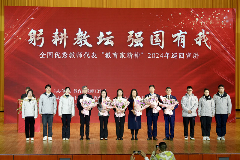 宣讲的6位成员有北京师范大学艺术与传媒学院院长、全国最美教师肖向荣,山西机电职业技术学院教授、国家级教学名师、全国教书育人楷模李粉霞,江苏省南京市浦口区行知教育集团总校长、全国教书育人楷模杨瑞清,广西壮族自治区北海市第一幼儿园园长、全国教书育人楷模、全国最美教师范徽丽,广东省佛山市顺德区启智学校书记、全国模范教师、全国最美教师申承林,湖北省武汉市盲童学校教师、全国最美教师、全国模范教师张龙等,他们的切身经历,是教育家精神的感人实践。