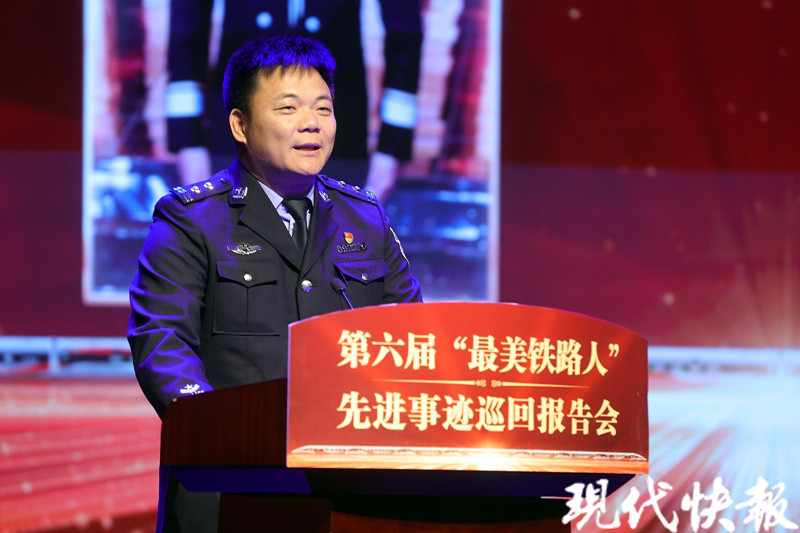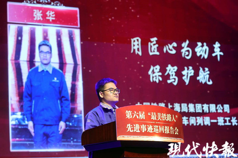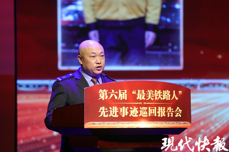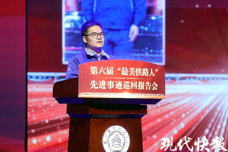 “中国高铁从无到有,动车检修也是从零起步……我们破除了关键设备自主检修壁垒,把技术牢牢掌握在自己手里!”在南京航空航天大学将军路校区艺术中心剧场内,中国铁路上海局集团有限公司上海动车段调试车间列调一班工长张华的报告铿锵有力,赢得阵阵掌声。3月21日下午,由中央宣传部宣传教育局、中国国家铁路集团有限公司党组宣传部共同主办的第六届“最美铁路人”先进事迹巡回报告会,走进南京航空航天大学。5名“最美铁路人”深情讲述新时代铁路人奋斗追梦的感人故事,为该校师生带来一堂生动的“大思政课”。