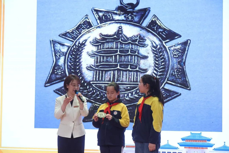 一百年前的一枚小小的银质奖章,蕴藏了妇女解放先驱张应春冲破封建枷锁的女性力量。通过现场近距离观察、触摸文物模型,让同学们对眼前这件革命文物有了更深的认识和感受。