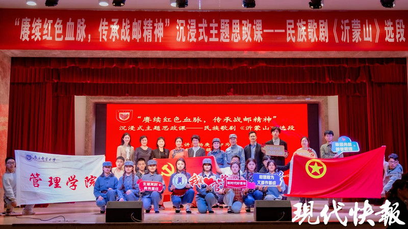 现代快报讯(通讯员 鲍捷 费语童 记者 于露)为献礼南京邮电大学办学82周年,日前,沉浸式主题思政课——民族歌剧《沂蒙山》选段在南京邮电大学三牌楼校区上演。