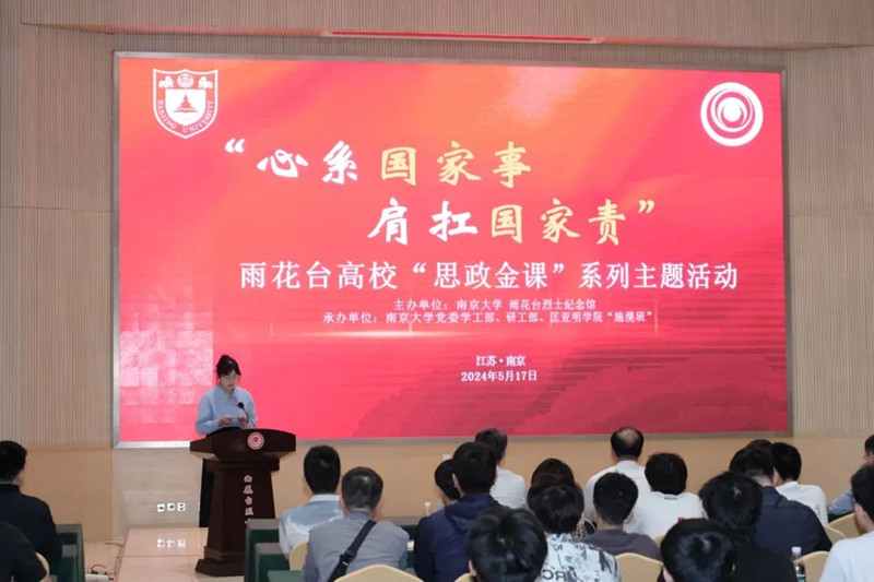 本堂思政“金课”以雨花英烈施滉的事迹与精神为引领,以“心系国家事,肩扛国家责”为主题,激励新时代青年“为中国式现代化挺膺担当”。雨花台烈士纪念馆、南京大学匡亚明学院代表以及“施滉班”、新生学院、物理学院、电子科学与工程学院、现代工程与应用科学学院师生代表80余人参与本次活动。